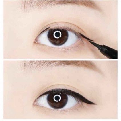 Bước 2: Kẻ những đường ngắn sát mi mắt. Nối những đường kẻ cho nét vẽ liền mạch, tạo nét vẽ mỏng hoặc dày tùy theo phong cách