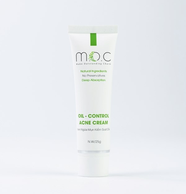 Bổ sung các tinh chất thiên nhiên vào kem trị mụn để hạn chế các nhược điểm thường thấy ở các kem trị mụn (như gây khô da, dễ kích ứng),M.O.C Oil Control Acne Cream có thành phần chiết xuất từ Cúc La Mã, rễ Bạch Vĩ, vỏ Quế tạo nên lớp màng bảo vệ ẩm mượt, nâng niu làn da mỏng manh, nhạy cảm của bạn. Đây là cách trị mụn từ thiên nhiên hiệu quả mà bạn có thể áp dụng ngay tại nhà không cần đi spa:7 ngày gom nhân, kiểm soát dầu nhờn; 14 ngày hết mụn, mờ thâm sạm,…