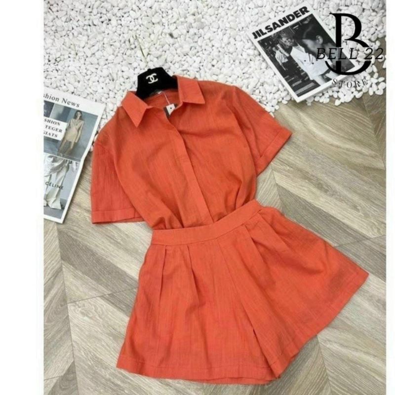 SET BỘ ĐŨI XƯỚC ÁO SƠ MI TAY NGẮN KÈM QUẦN SHORT CÙNG MÀU B438