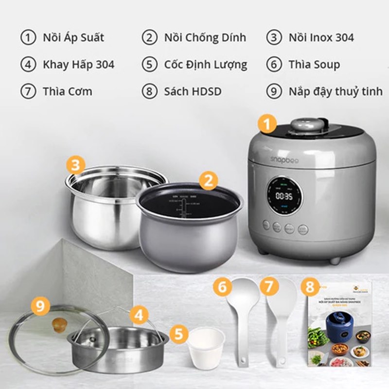 [Tặng 1 tổ yên chưng mini + Sách công thức] Snapbee Nồi áp suất đa năng Queen S45 4.5L