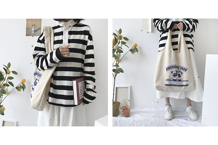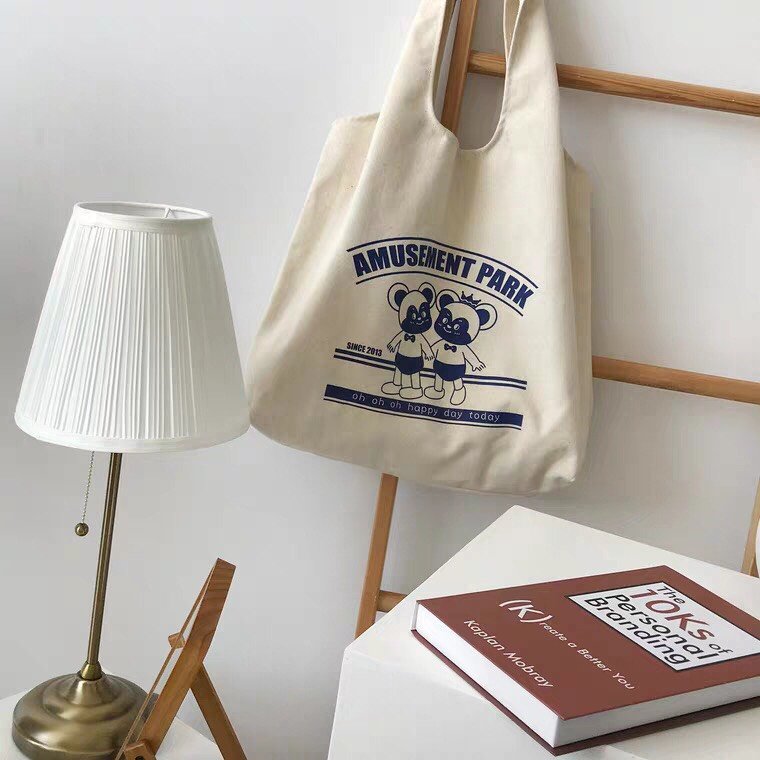 Tote In Chuột Amusement vải Kaki Hàn chất lượng cao kết hợp quai cá tính đang là mẫu túi thu hút sự chú ý của đông đảo các teengirl sành điệu.