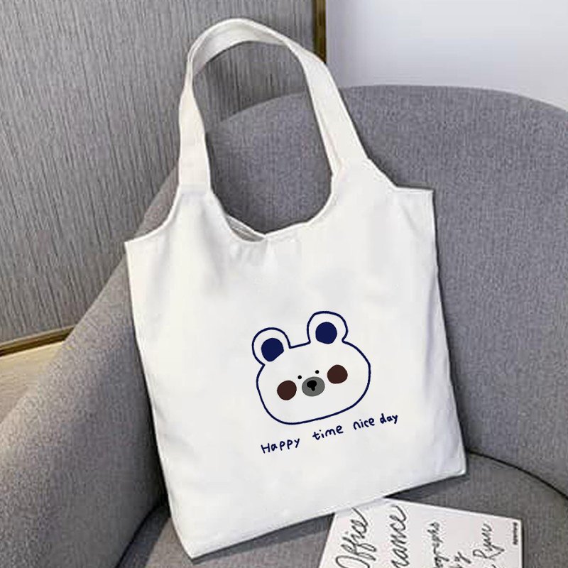 Tote In Gấu Happy Time TT30 vải Kaki Hàn chất lượng cao kết hợp quai cá tính đang là mẫu túi thu hút sự chú ý của đông đảo các teengirl sành điệu.
