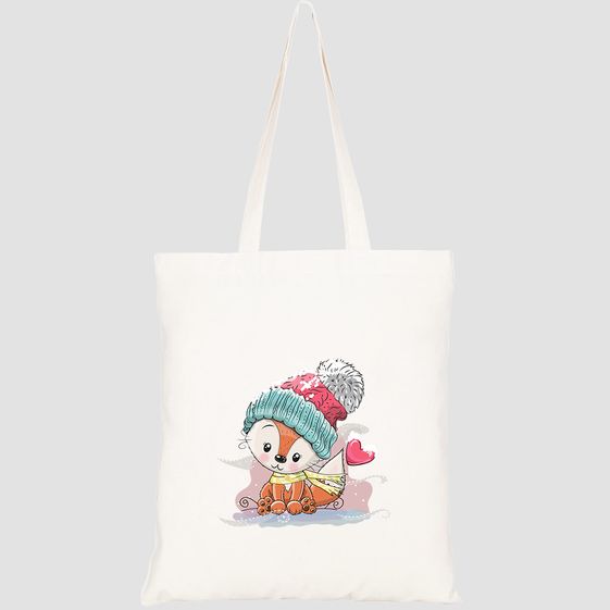 TÚI VẢI TOTE CANVAS IN HÌNH CUTE CARTOON FOX KINITTED CAP HT522 – HTFASHION