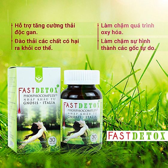 Sản phẩm Fast Detox với thành phần từ thiên nhiên giúp hỗ trợ giải độc gan, làm chậm quá trình oxy hóa, làm chậm hình thành các gốc tự do và thải độc trong cơ thể.
